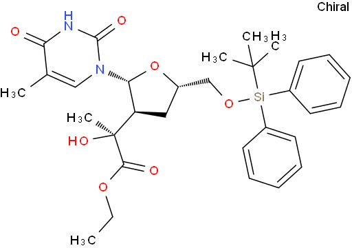 2',3'-Dideoxy-5'-O-[(1,1-dimethylethyl)diphenylsilyl]-2'-[(1S)-2-ethoxy-1-hydroxy-1-methyl-2-oxoethyl]-5-methyluridine