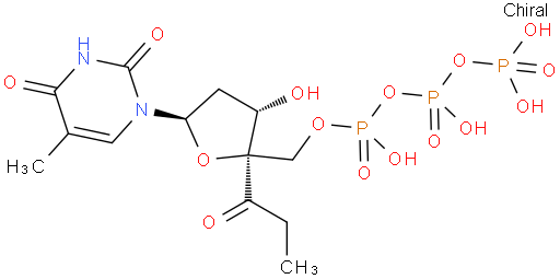 Thymidine 5'-(tetrahydrogen triphosphate), 4'-C-(1-oxopropyl)-