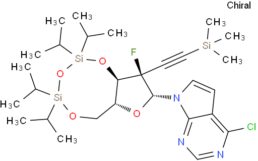 4-Chloro-7-[(2R)-2-deoxy-2-fluoro-3,5-O-[1,1,3,3-tetrakis(1-methylethyl)-1,3-disiloxanediyl]-2-[2-(trimethylsilyl)ethynyl]-β-D-erythro-pentofuranosyl]-7H-pyrrolo[2,3-d]pyrimidine