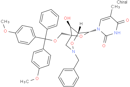 1-[(1R,5R,7R,8S)-5-[[Bis(4-methoxyphenyl)phenylmethoxy]methyl]-8-hydroxy-3-(phenylmethyl)-2,6-dioxa-3-azabicyclo[3.2.1]oct-7-yl]-5-methyl-2,4(1H,3H)-pyrimidinedione NC4224841020210-84-7