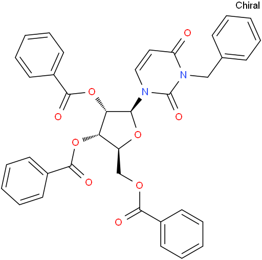 3-(Phenylmethyl)-1-(2,3,5-tri-O-benzoyl-β-L-ribofuranosyl)-2,4(1H,3H)-pyrimidinedione 3-(Phenylmethyl)-1-(2,3,5-tri-O-benzoyl-β-L-ribofuranosyl)-2,4(1H,3H)-pyrimidinedione NC4226241019641-07-6