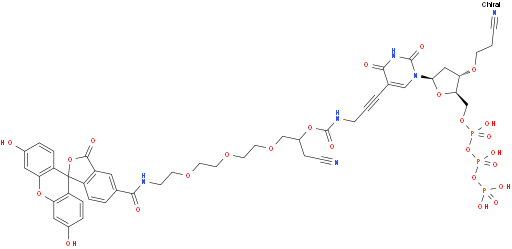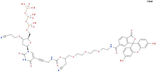 3'-O-(2-Cyanoethyl)-5-[7-(cyanomethyl)-19-(3',6'-dihydroxy-3-oxospiro[isobenzofuran-1(3H),9'-[9H]xanthen]-6-yl)-5,19-dioxo-6,9,12,15-tetraoxa-4,18-diazanonadec-1-yn-1-yl]-2'-deoxyuridine 5'-(tetrahydrogen triphosphate) NC3599531288999-26-7