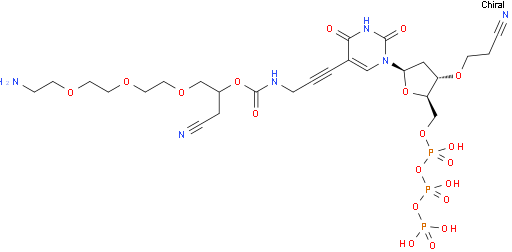5-[17-Amino-7-(cyanomethyl)-5-oxo-6,9,12,15-tetraoxa-4-azaheptadec-1-yn-1-yl]-3'-O-(2-cyanoethyl)-2'-deoxyuridine 5'-(tetrahydrogen triphosphate) NC3599611288999-09-6