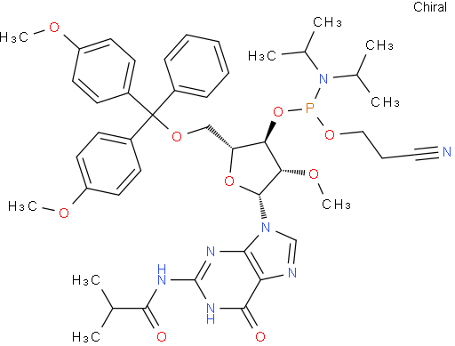 N-[9-[5-O-[Bis(4-methoxyphenyl)phenylmethyl]-3-O-[[bis(1-methylethyl)amino](2-cyanoethoxy)phosphino]-2-O-methyl-β-D-arabinofuranosyl]-6,9-dihydro-6-oxo-1H-purin-2-yl]-2-methylpropanamide NC3712401239669-74-9