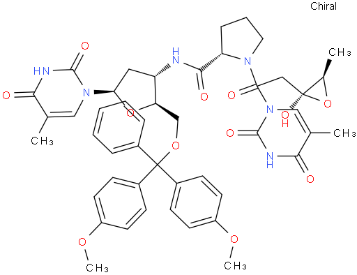 5'-O-[Bis(4-methoxyphenyl)phenylmethyl]-3'-deoxy-3'-[[[(2S)-1-[1,2-dideoxy-1-(3,4-dihydro-5-methyl-2,4-dioxo-1(2H)-pyrimidinyl)-β-D-erythro-pentofuranuronoyl]-2-pyrrolidinyl]carbonyl]amino]thymidine NC3792901201667-14-2