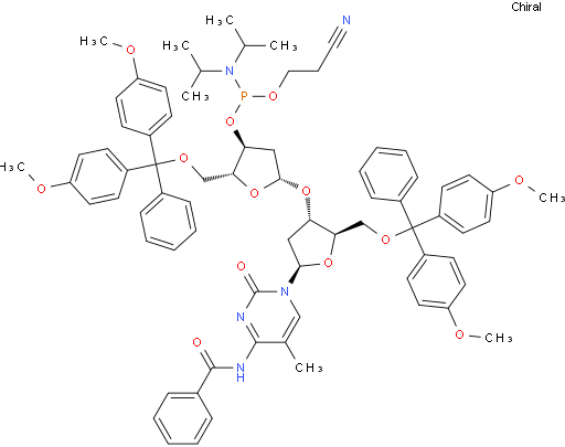 N-Benzoyl-5'-O-[bis(4-methoxyphenyl)phenylmethyl]-3'-O-[5-O-[bis(4-methoxyphenyl)phenylmethyl]-3-O-[[bis(1-methylethyl)amino](2-cyanoethoxy)phosphino]-2-deoxy-β-D-erythro-pentofuranosyl]-2'-deoxy-5-methylcytidine NC2404222098656-68-7