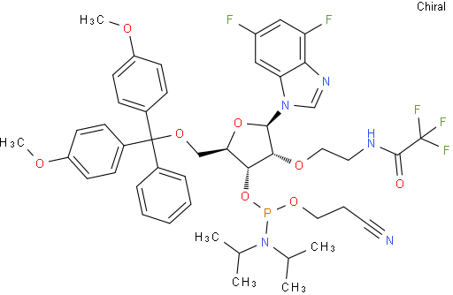 1H-Benzimidazole, 1-[5-O-[bis(4-methoxyphenyl)phenylmethyl]-3-O-[[bis(1-methylethyl)amino](2-cyanoethoxy)phosphino]-2-O-[2-[(trifluoroacetyl)amino]ethyl]-β-D-ribofuranosyl]-4,6-difluoro- NC78170—