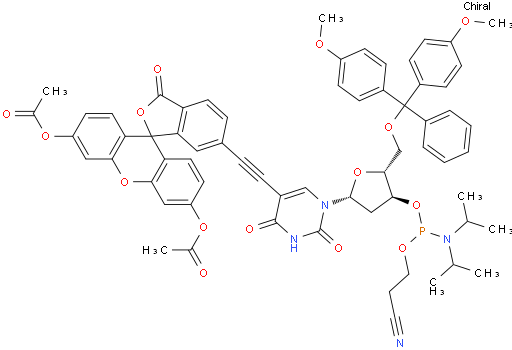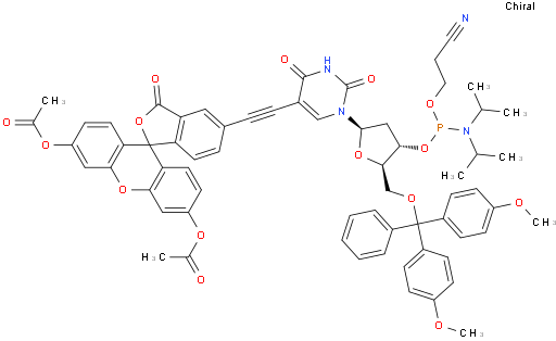 Uridine, 5-[[3',6'-bis(acetyloxy)-3-oxospiro[isobenzofuran-1(3H),9'-[9H]xanthen]-5-yl]ethynyl]-5'-O-[bis(4-methoxyphenyl)phenylmethyl]-2'-deoxy-, 3'-[2-cyanoethyl bis(1-methylethyl)phosphoramidite] NC105670607377-81-1