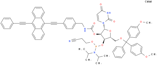Uridine, 5'-O-[bis(4-methoxyphenyl)phenylmethyl]-, 3'-[2-cyanoethyl bis(1-methylethyl)phosphoramidite] 2'-[[[4-[[10-(phenylethynyl)-9-anthracenyl]ethynyl]phenyl]methyl]carbamate] NC91251717883-30-2